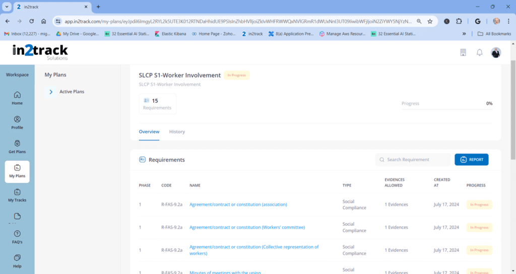 in2track tracks requirements and documented evidence cost-effectively. The platform is a software-as-a-service (SaaS) Program Management System designed to reduce time, efforts and expenses associated with managing, updating, maintaining and accessing evidence needed to demonstrate compliance with requirements in audits and applications of any type. Save time and be always ready with system-generated alerts on programs, certifications and evidence expirations.